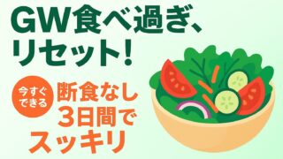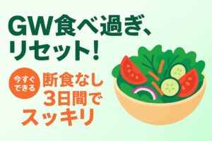 GWの食べ過ぎで増えた体重はむくみが原因のことがほとんど。断食不要・コンビニOKの3日間リセットプランで、連休明けから無理なく元の体重を取り戻しましょう。