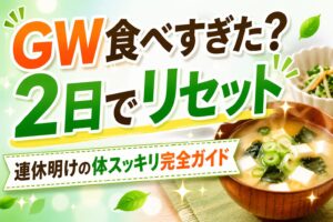 GWの食べ過ぎで増えた体重はむくみが原因のことも。断食なしで実践できる最初の3日間リセット食事プランを、コンビニ活用法とともに丁寧に解説します。
